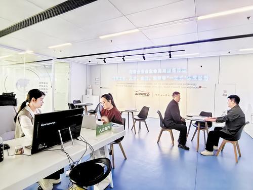10月16日,在张家口市数据和政务服务局企业服务中心,工作人员为前来办事的企业代表提供帮助。本报记者 刘雅静摄